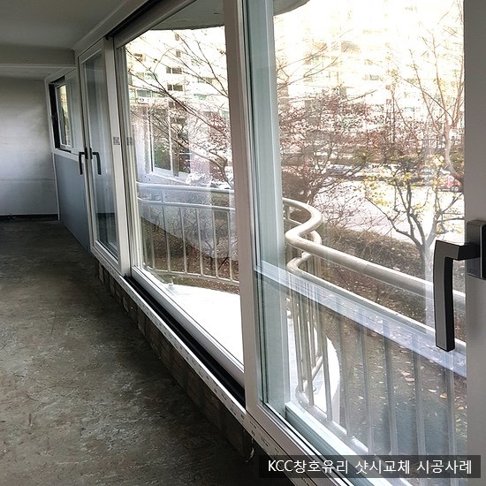 곡유리 베란다 →일자 샷시로 교체시공